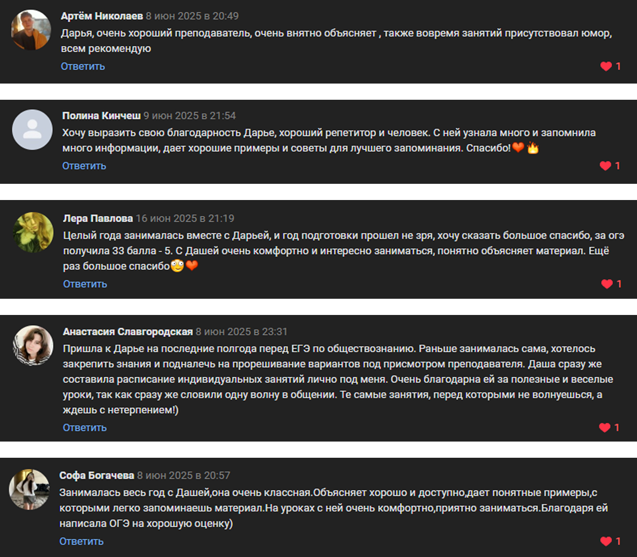 ОТЗЫВЫ О ЗАНЯТИЯХ С НАШИМИ ПРЕПОДАВАТЕЛЯМИ